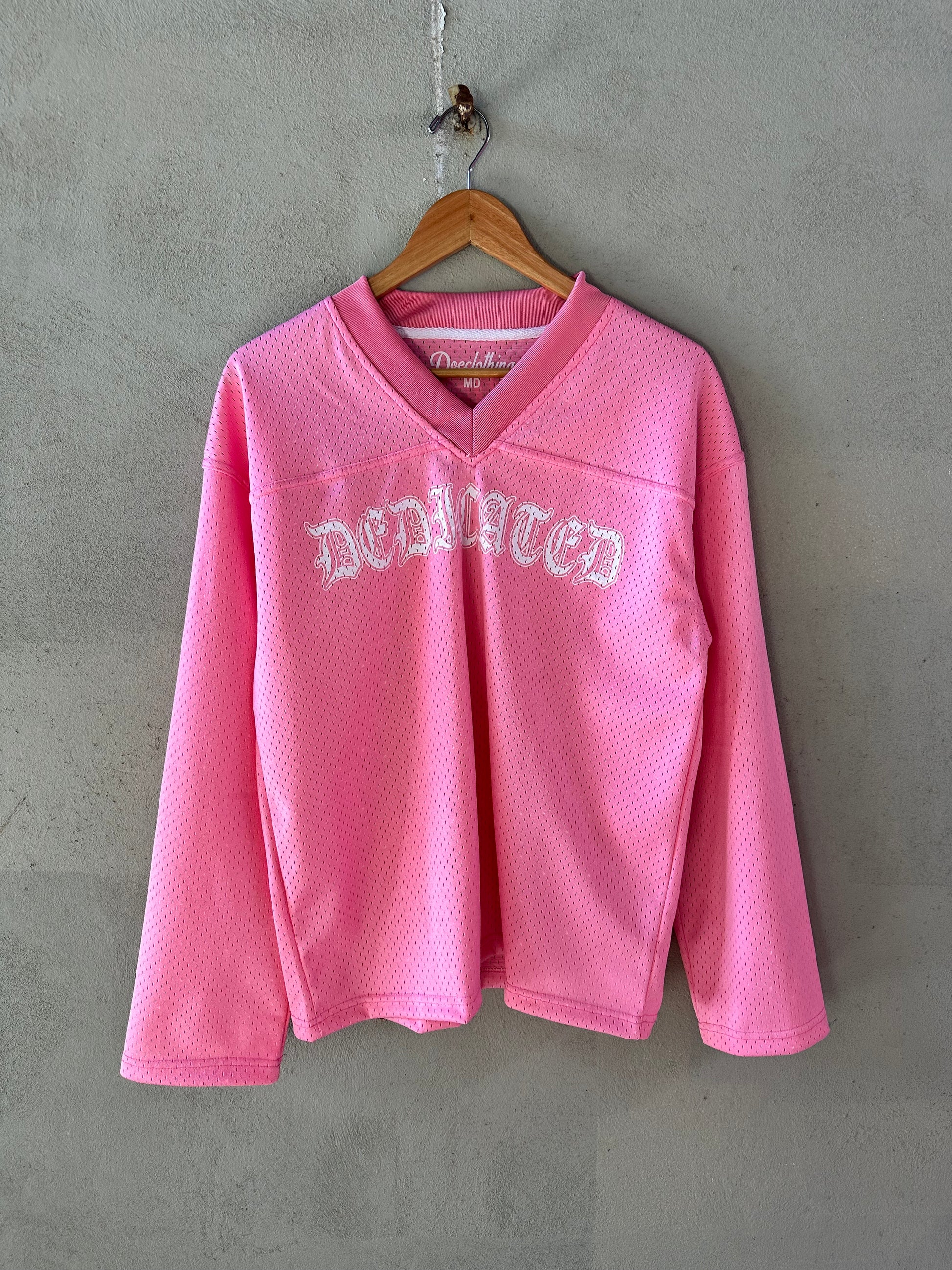 “DEDICATED” PINK MESH HOCKEY JERSEY